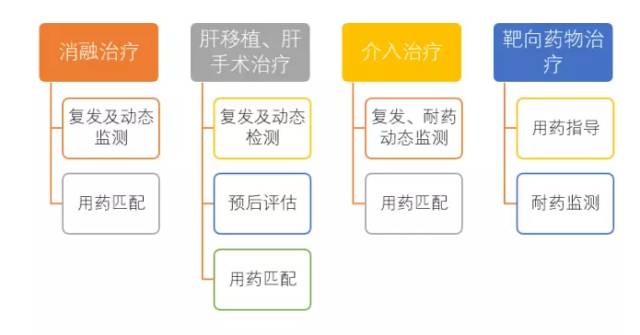 监测肝癌移植患者、手术切除患者、介入治疗患者、靶向药物治疗患者治疗后的基因变化情况,并及时调整新的治疗方案,扩大患者生存获益。