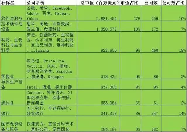 纳斯达克各个板块的统计对于我们做风险投资有重要的指导意义: