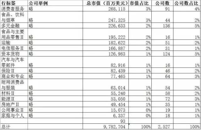 上面这张表是我对所有纳斯达克公司截止至2017年5月15日市值做的各个板块的统计。