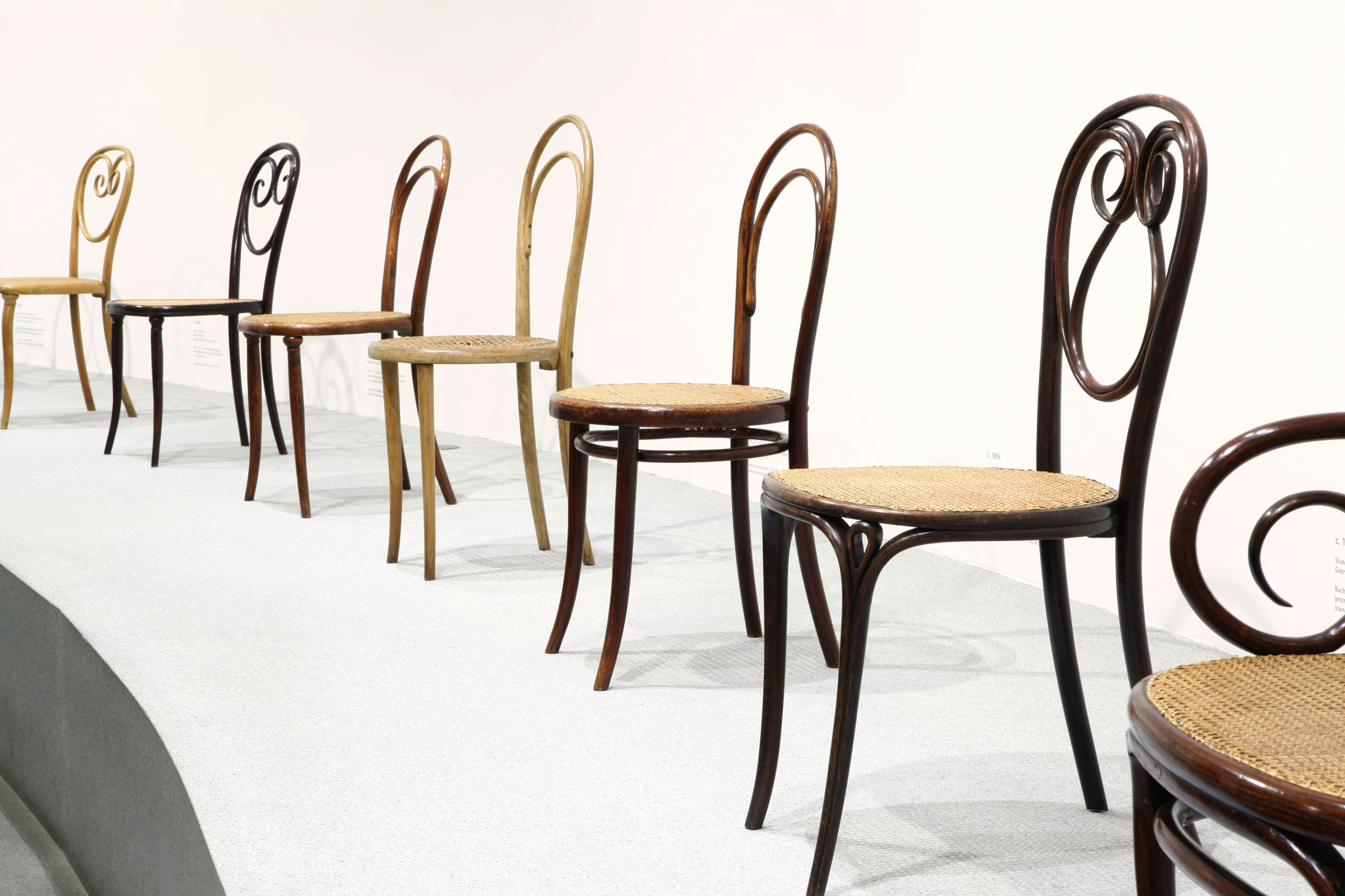 由于放弃了榫卯连接,椅子可以以部件的形式低成本运输,在目的地再简易的组装,大批量生产的椅子就低成本走向全世界。所以,当时在欧洲、美洲、亚洲,在当年历史的照片里面,包括在中国、日本,我们都能看到这些椅子。